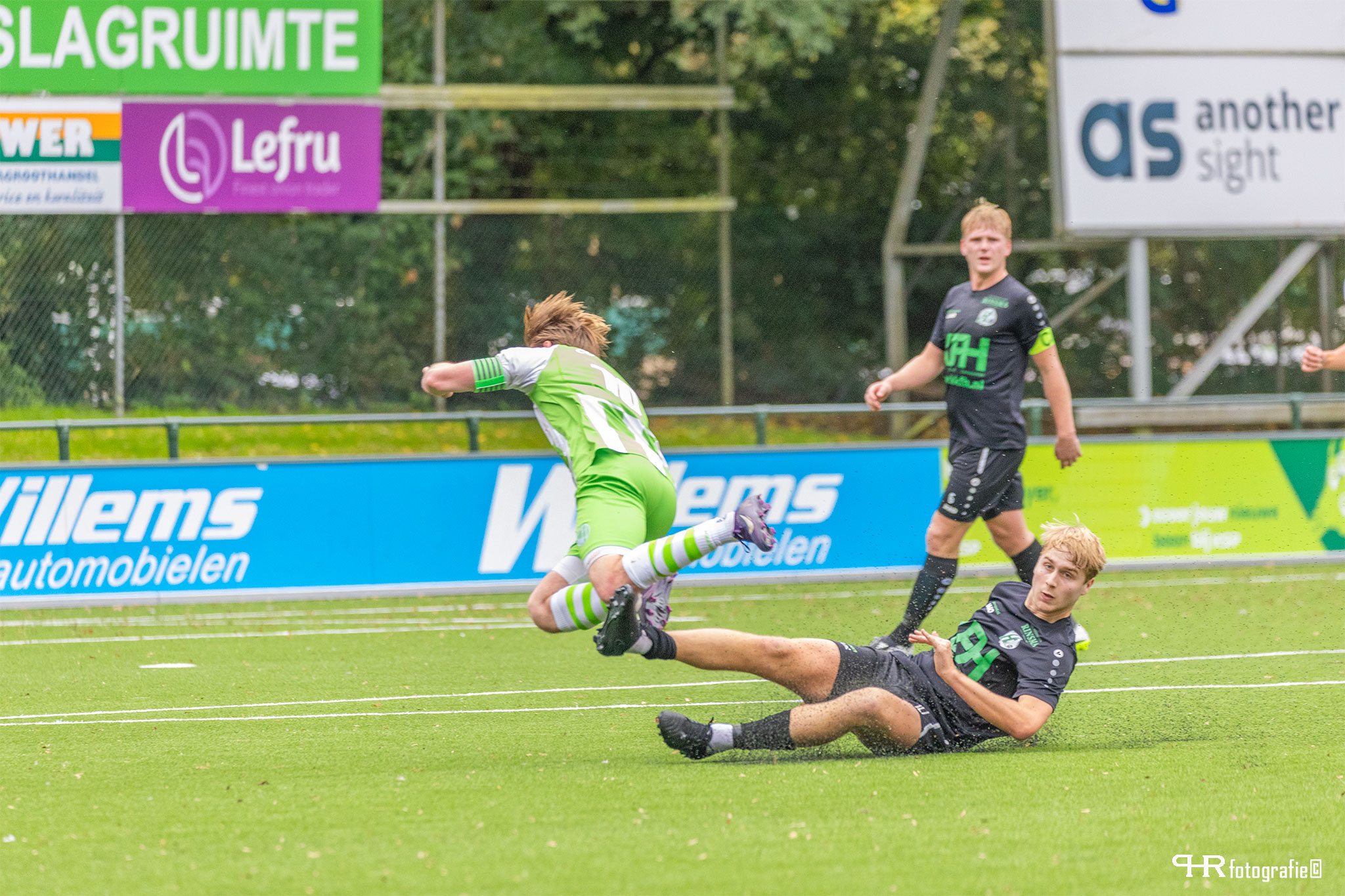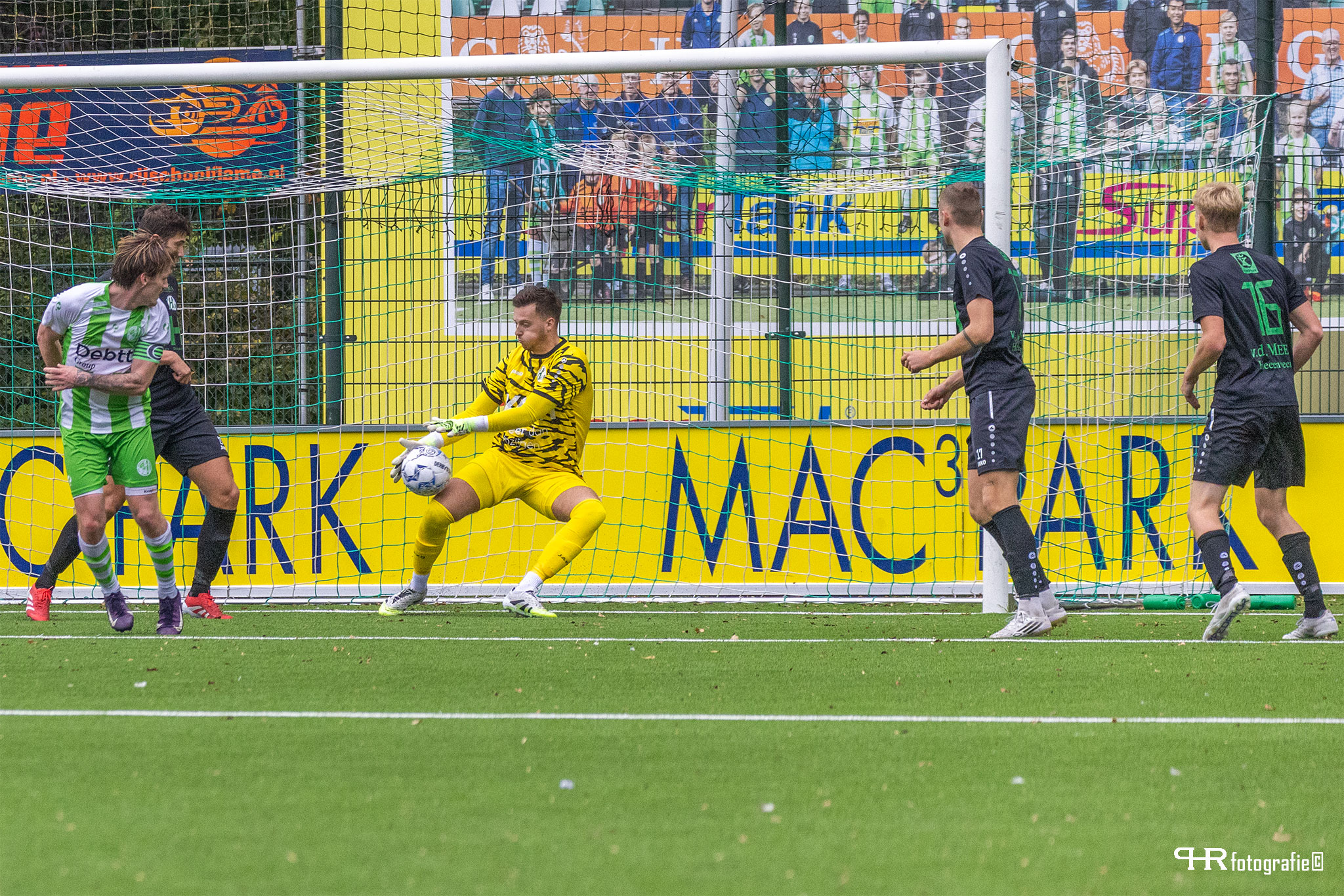 Nadat in minuut 90 bij een Drontense corner iedereen schreeuwde om hands en een penalty, leek Mostert bij de tegenstoot van Heerenveen, met zijn lange lichaam even te denken aan een volleybalsmash: hij wist zich even geen raad en sloeg de bal met de hand weg. De scheidsrechter spaarde de jonge verdediger en gaf hem ‘slechts’ geel.