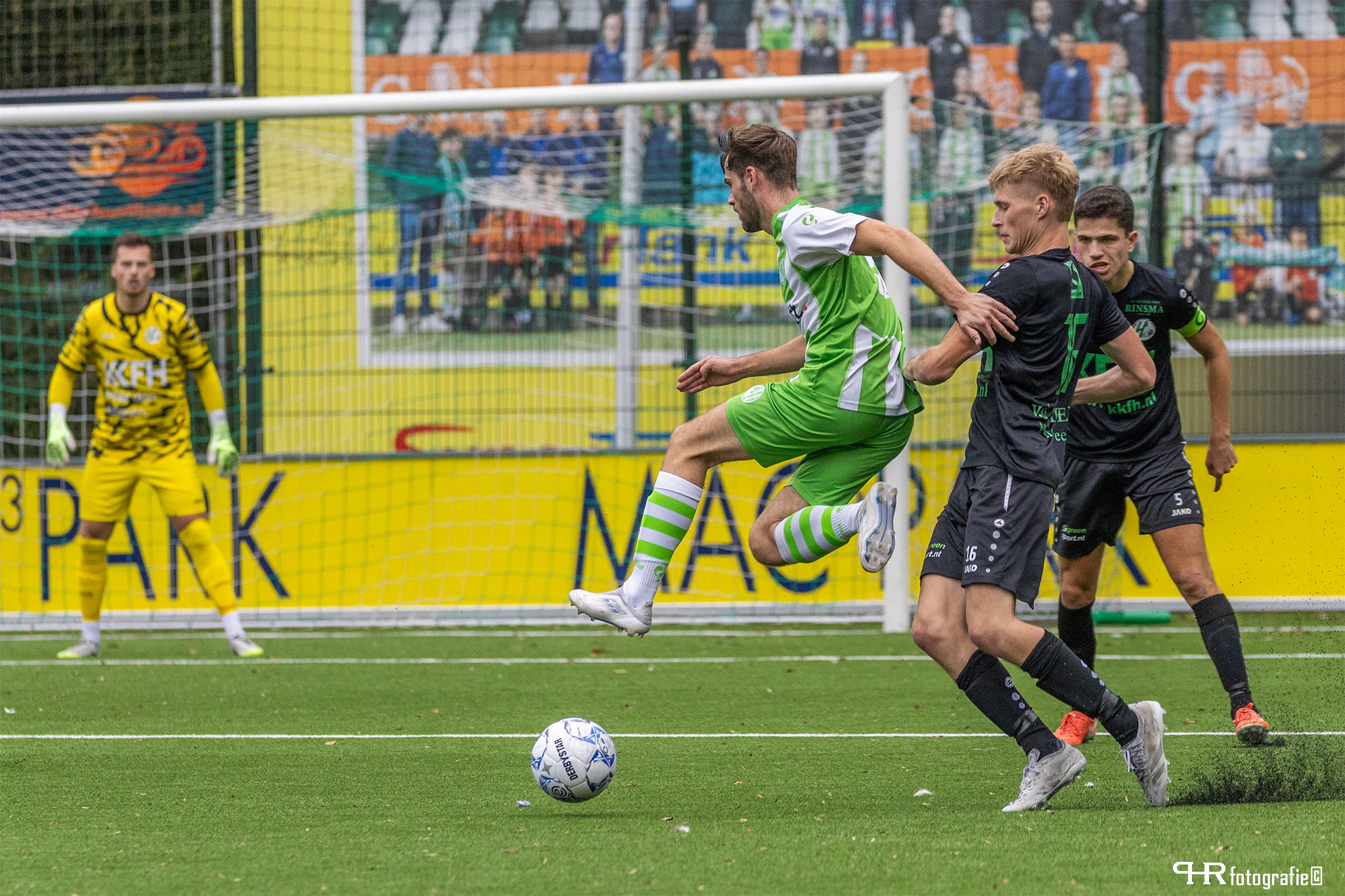 Terwijl Heerenveense Boys fysiek steeds meer de randjes opzocht, werd het publiek in de 25e minuut getrakteerd op een wonderschone aanval, die leidde tot de openingsgoal. Julian de Ruiter zette de aanval op, en via een aantal passes en hakjes belandde de bal via Bosch en Bastiaan op de rand 16 bij Schols, die de bal in de kruising deponeerde. Publiek op de banken en dit leek de aanzet richting nog meer moois!